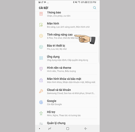 Bước 1: Vào cài đặt tính năng nâng cao.