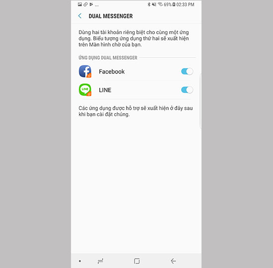 Dual Messenger là một tính năng đặc biệt được Samsung trang bị trên thiết bị Galaxy Note 8 giúp người dùng đăng nhập hai trương mục Facebook trên máy.