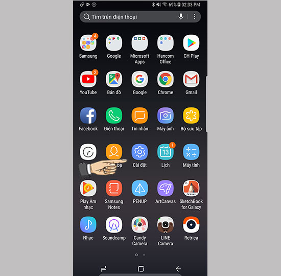 Để soát bạn đã hoàn tất, bạn quay về màn hình áp dụng. Những ứng dụng bạn mới cài đặt sẽ có 2 dấu tròn màu cam trên icon máy.
