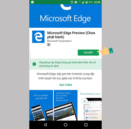 chỉ dẫn tải Microsoft Edge Beta trên Android