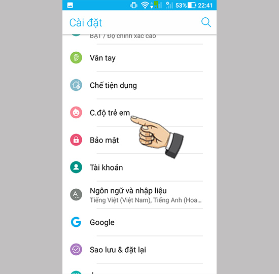 Chế độ trẻ thơ trên máy Asus Zenfone 4 Max ZC520KL